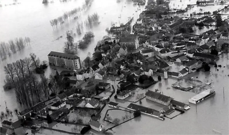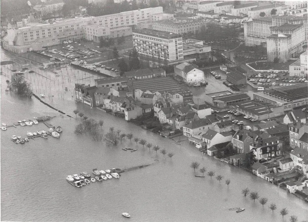 Au mois de janvier 1995, après des pluies diluviennes, les niveaux de la Maine, de la Sarthe et de la Mayenne débordent. Les abords des cours d’eau sont inondés à un niveau tel que le plus haut de 1910 – 6,63 mètres de haut – est pulvérisé.