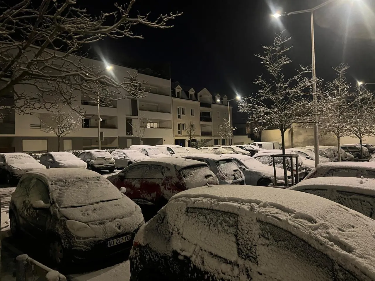 Un parking avec des voitures enneigées, ce mardi 6 janvier, à Angers. © Ouest-France