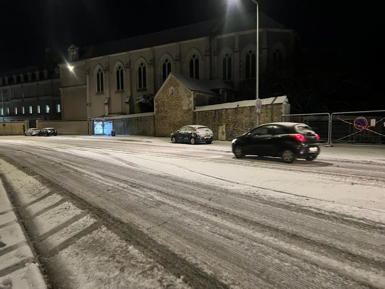 Les sols et les toits sont blancs à Angers, ce mardi matin. Jusqu’à 10 centimètres de neige étaient attendus localement dans le département, d’après la préfecture.