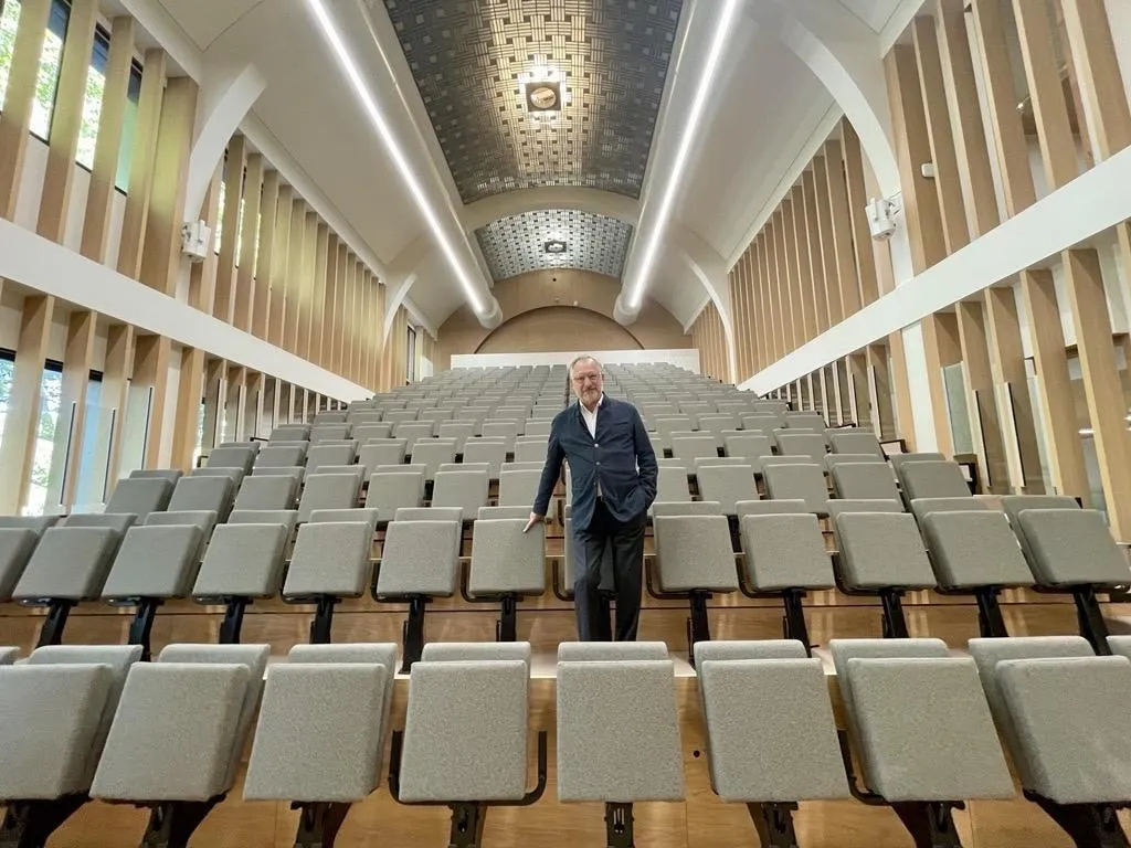 Angers, 18 septembre 2025. Philippe Tuffreau, président du Crédit Mutuel Anjou, dans la salle aux alambics qui dispose de 190 sièges rétractables. © CO – Anthony PASCO