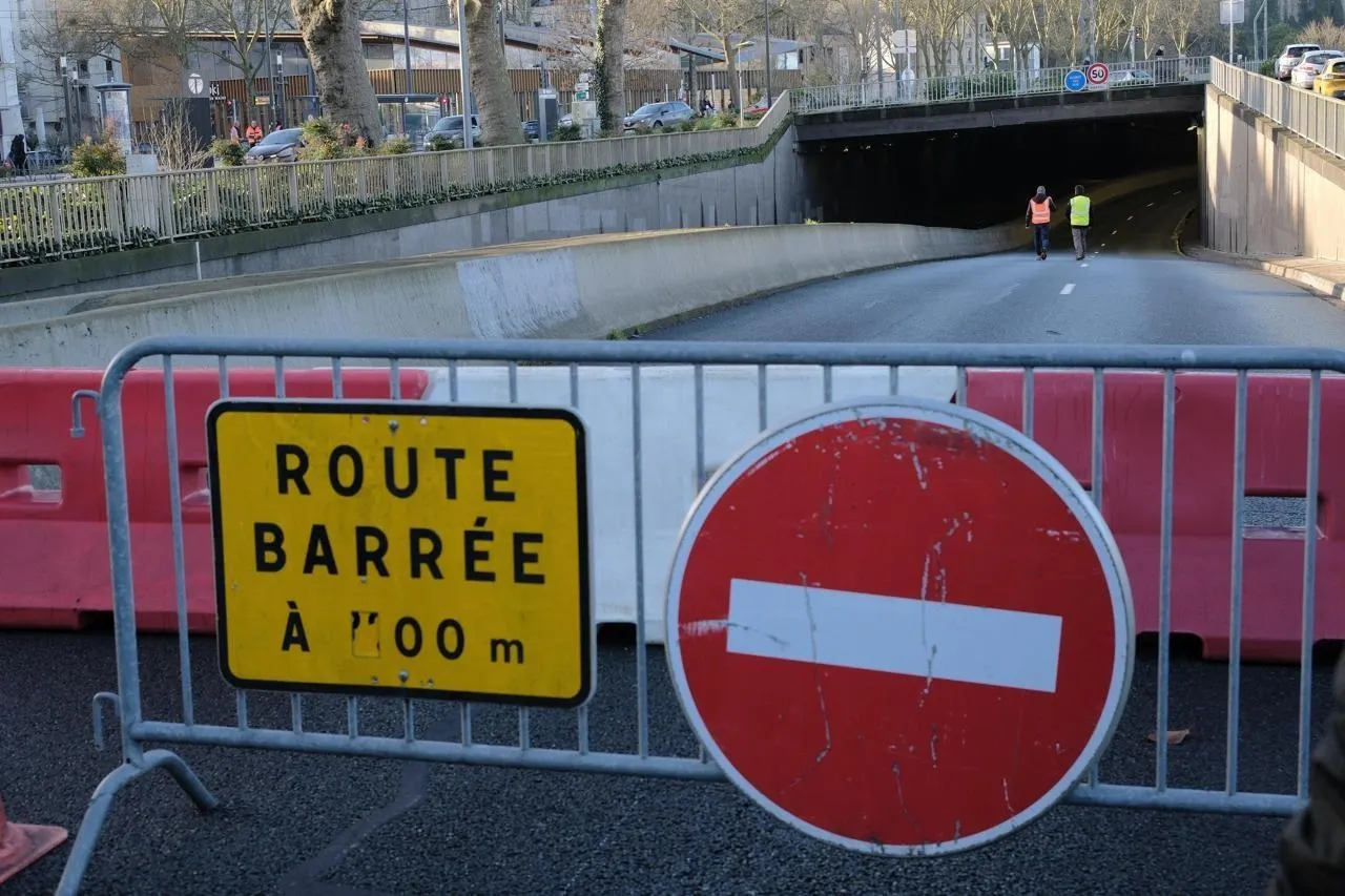 Des fuites commençaient à apparaître dans les trémies des voies sur berges, à Angers. Ces dernières ont été fermées à la circulation dès lundi 16 février 2026. Simon Torlotin / Ouest-France