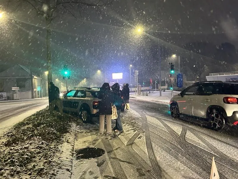 Les premiers flocons de neige tombent dans le Maine-et-Loire ce lundi 5 janvier. La route devient glissante. Un accident sans gravité s’est produit ce lundi soir 5 janvier rue de La Meignanne à Angers. © Photos CO - Franck De BRITO