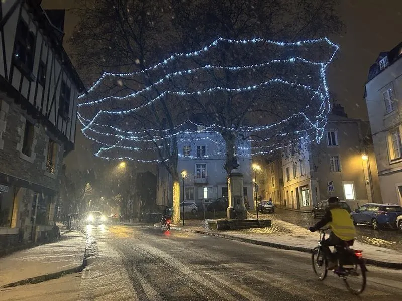 Comme attendu et prévu, les premières averses de neige de l’année 2026 se produisent dans le Maine-et-Loire ce lundi soir 5 janvier. Un manteau blanc a d’abord recouvert des jardins du département, notamment au Plessis-Macé au nord-ouest d’Angers. Les flocons n’ont pas épargné non plus le centre-ville d’Angers. Tombés vers 19 heures, ils offrent ainsi de jolis clichés à la tombée de la nuit.