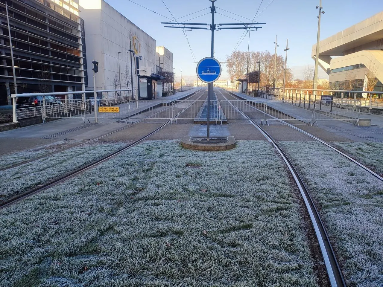 La première rame, équipée pour éliminer le verglas, a circulé dans la zone et est maintenant à l’arrêt allée François-Mitterrand à Angers. Ouest-France
