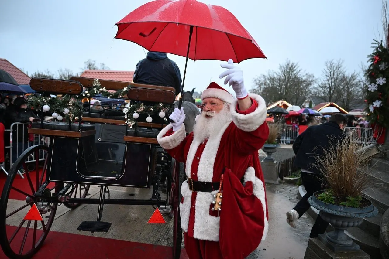 malgré un temps exécrable, des averses s’étant invitées à la fête. Le bonhomme rouge à la barbe blanche a reçu les clés de la Ville des mains du maire, Christophe Béchu.