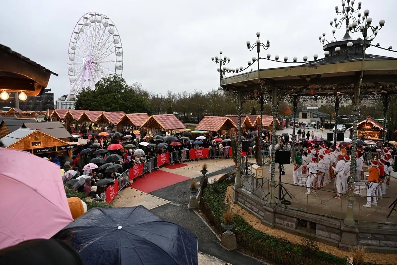 Angers, le 29 novembre 2025. Les animations de Soleils d’hiver se sont ouvertes dans le centre-ville d’Angers avec l’ouverture des chalets de Noël et l’arrivée du père Noël. © Josselin Clair - Le Courrier de l’Ouest