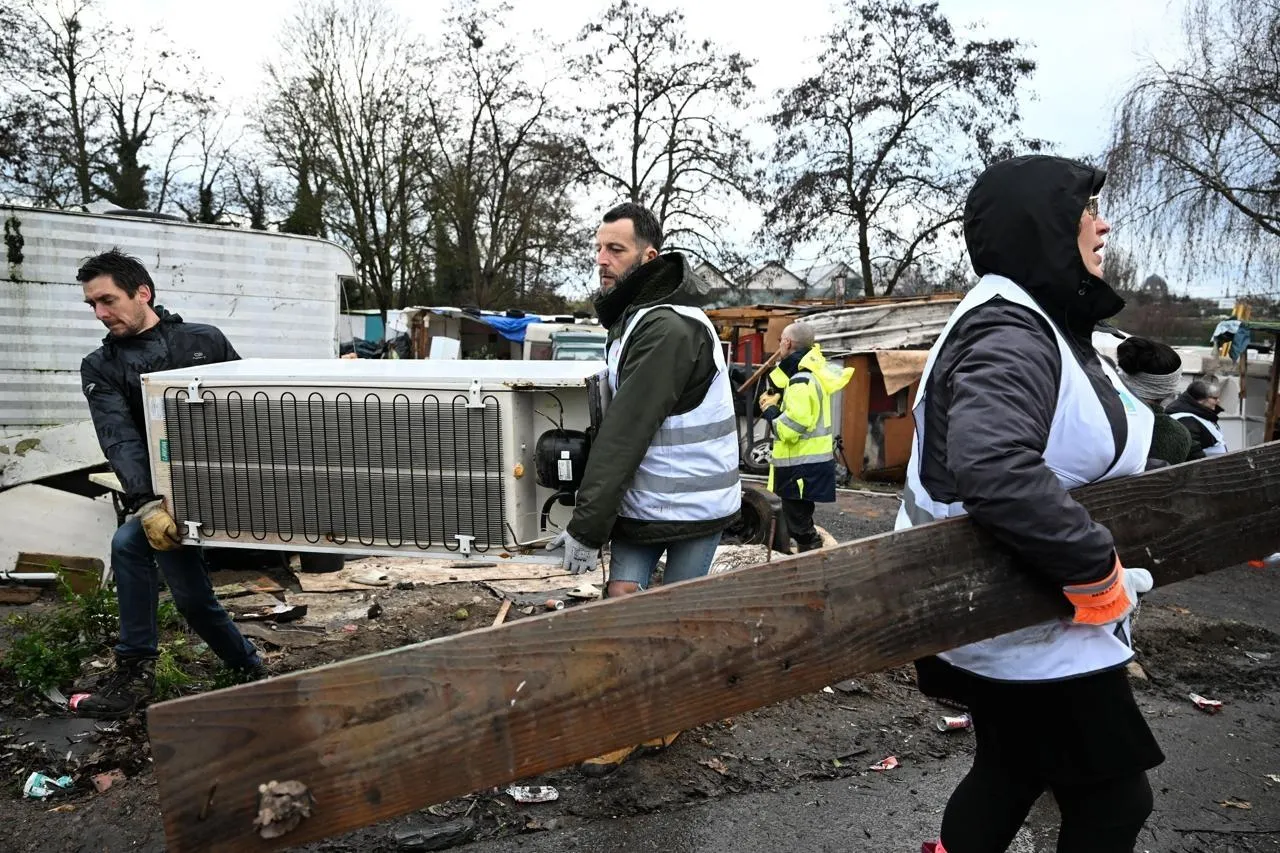 Le bidonville de Villechien, à Saint-Barthélemy-d’Anjou, a commencé à être évacué ce mercredi 21 janvier 2026. © CO - Josselin CLAIR