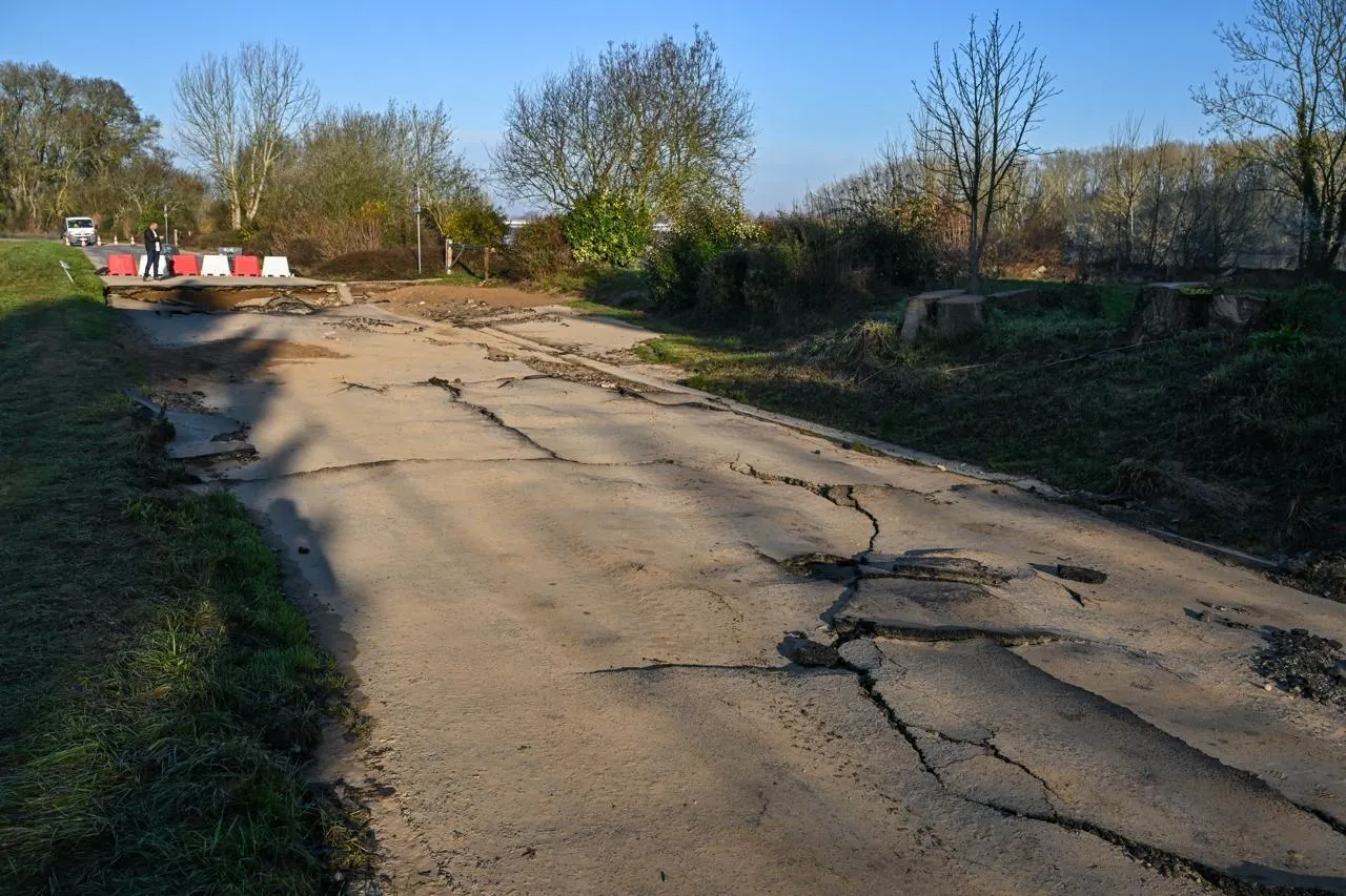 EN IMAGES. « Un tourbillon a creusé et soulevé les plaques d’enrobés » : cette route a été éventrée par la Loire en crue... |