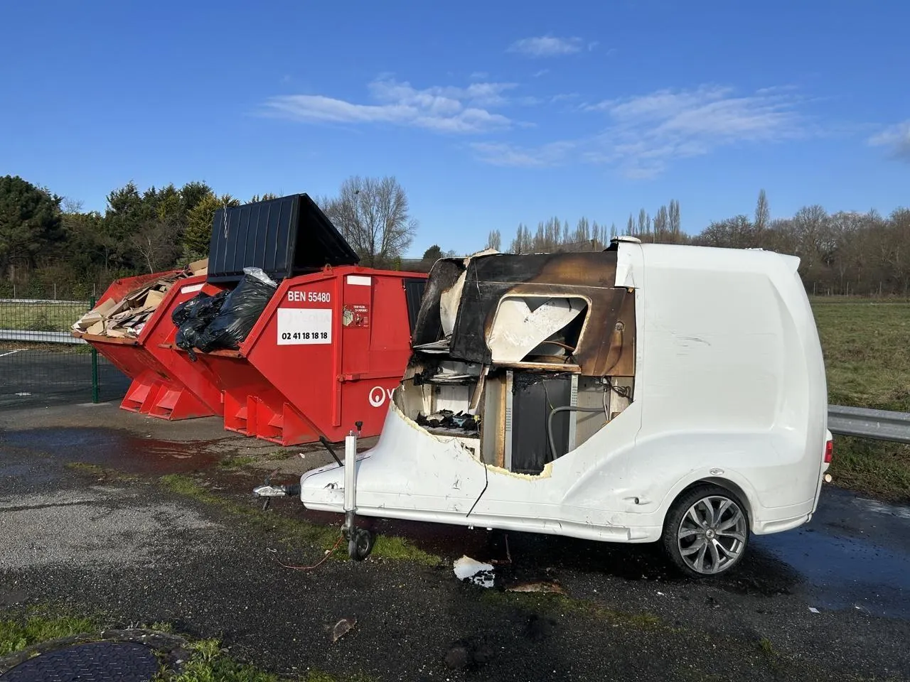 La remorque, qui abritait une petite cuisine, a été en partie détruite. © CO