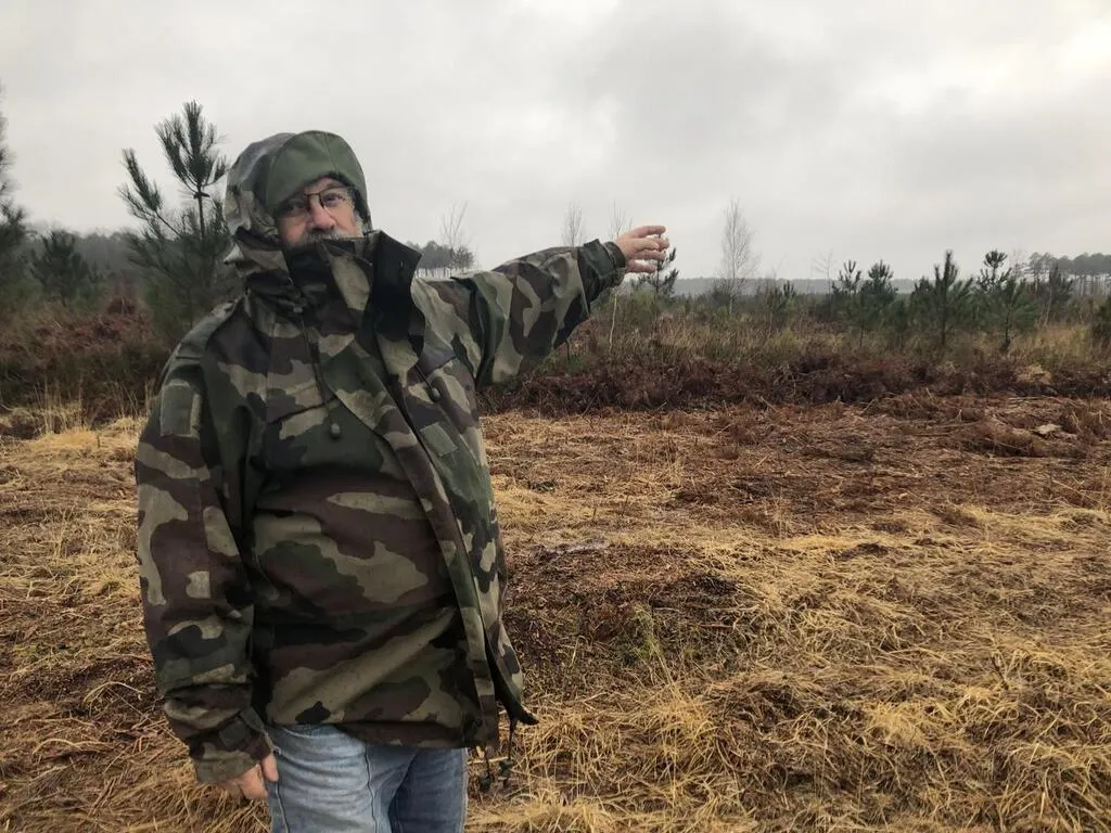 Baugé-en-Anjou, le 10 janvier 2025. Philippe Pot devant la parcelle retenue pour le projet de centrale solaire dans la forêt du Pugle (qu’il conteste). Le projet, validé lors du conseil communautaire du Baugeois-Vallée du 24 avril 2025, n’a pas fait l’unanimité. © Archives CO – Christophe RICCI