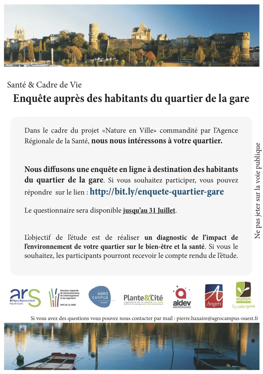 Dans le cadre du projet «Nature en Ville» commandité par l’Agence Régionale de la Santé, nous nous intéressons à votre quartier.