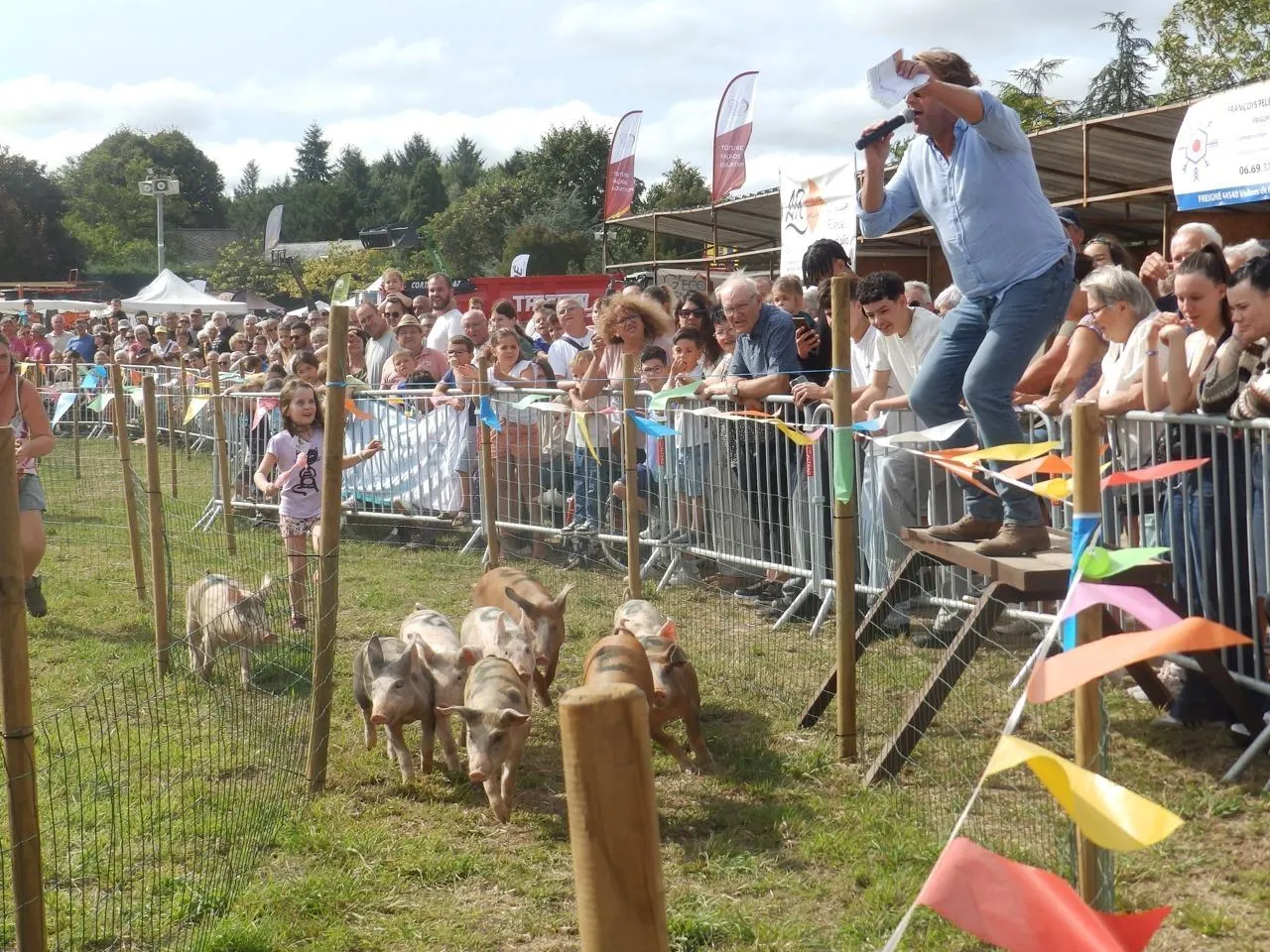 Dimanche 7 septembre, avec une météo tout aussi favorable, les animations proposées – vide-greniers organisé par le Foyer Laïc, spectacle équestre avec la compagnie de la Licorne, courses de cochons – et la restauration ont favorisé les rencontres dans une ambiance festive, au son des trompes des Échos des Vallons, et des musiques festives landaises de la Tekila Banda et fanfare.