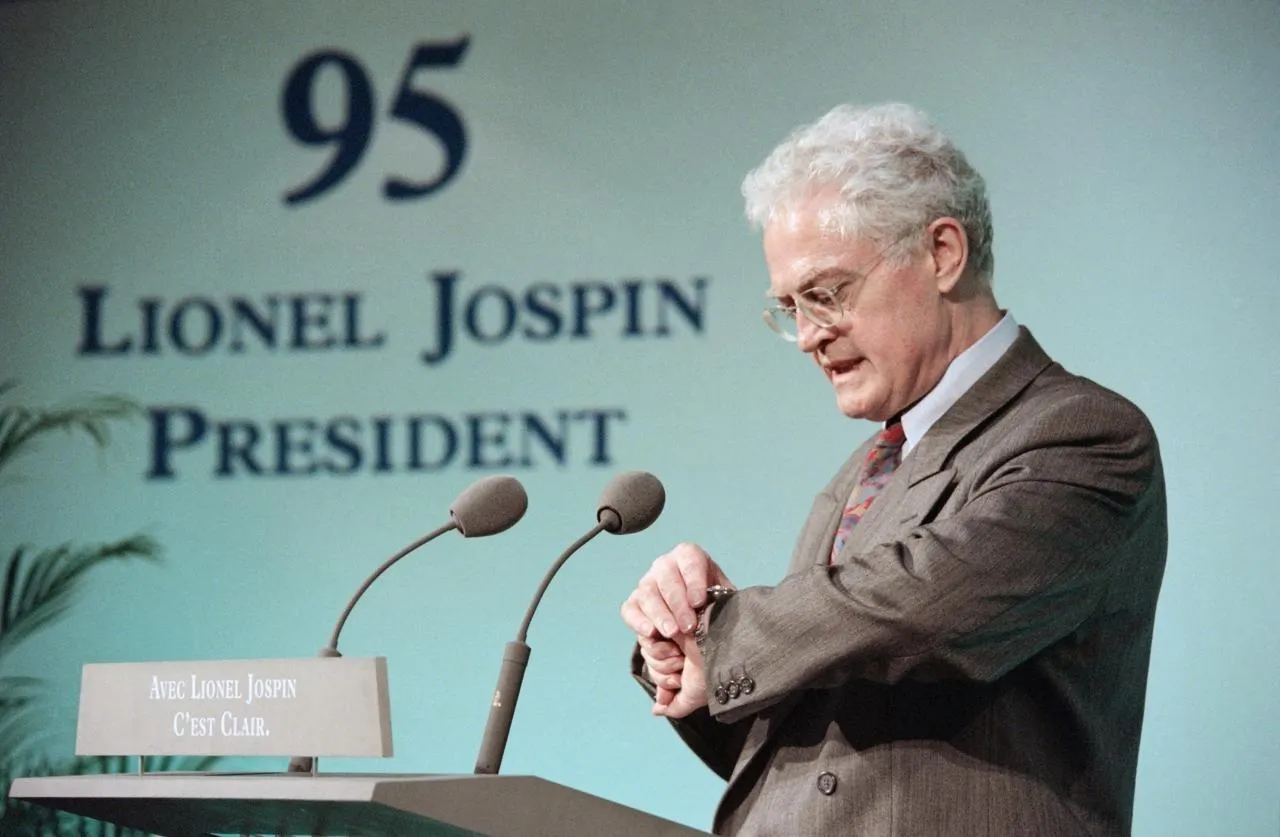 Lionel Jospin devant les militants de son parti, au siège de son quartier général de campagne à Paris, au soir du 21 avril 2002. Lorsqu’il venait d’apprendre qu’il était éliminé dès le premier tour de la présidentielle. © REUTERS