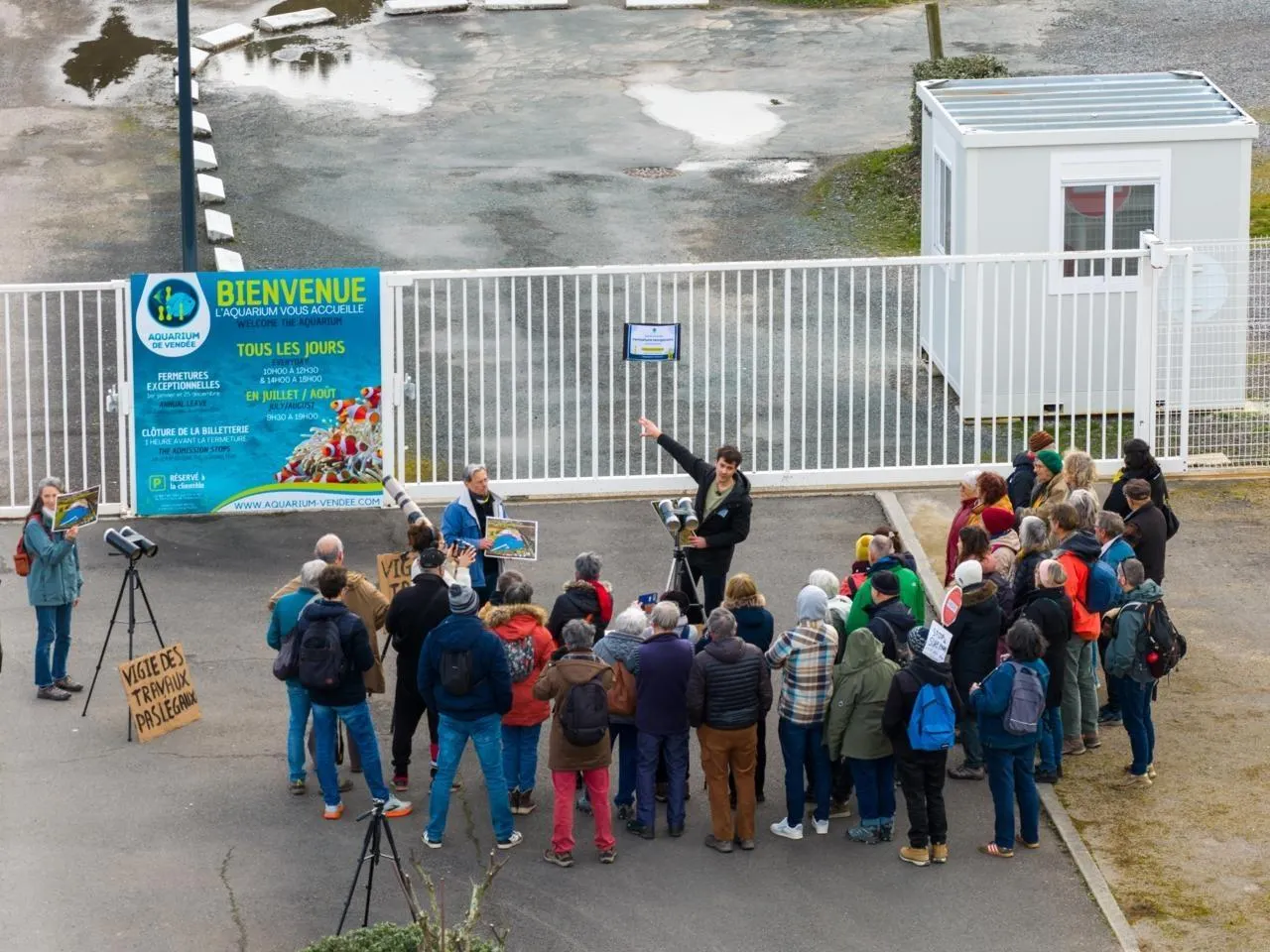 Environ une quarantaine d’adhérents de l’association AC de Vagues se sont rassemblés devant l’aquarium de Talmont-Saint-Hilaire où est prévu le projet de surf park. © Franck Dubray, Ouest France