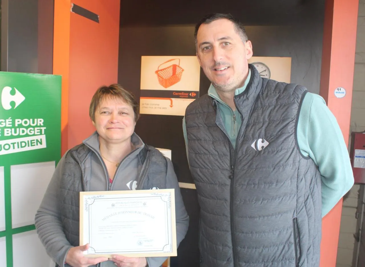 Richard Mainfroid, gérant du Carrefour express de Vern-d’Anjou, commune d’Erdre-en-Anjou, tenait à mettre à l’honneur une de ses employées, en l’occurrence Valérie Lardeux pour sa longévité à servir ce commerce.