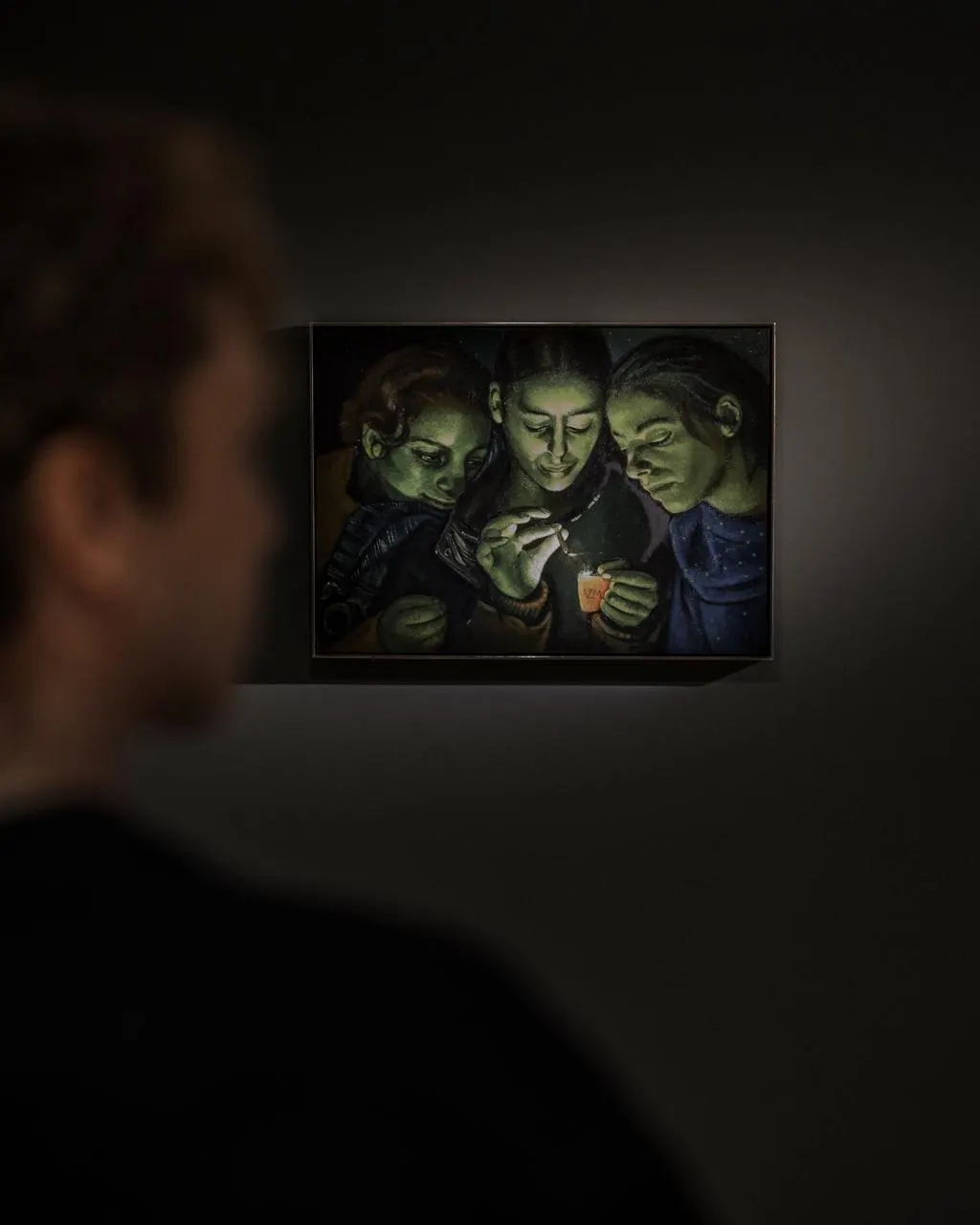 La transition de cette grande exposition s’articule autour des petits formats de Victor Man, artiste roumain né en 1974. Cet amateur de peinture classique, figurative, revisite la notion de clair-obscur en s’appuyant sur des maîtres du XVIIe. Avec « Titiriteros », il représente trois femmes d’aujourd’hui dans les postures de trois personnages du Greco sur son tableau de 1580, « La fable ». Dans cette salle plongée dans l’obscurité, Victor Man joue à la fois de séduction et de répulsion, avec des thèmes surprenants et une palette de couleurs étrangement verdâtres.