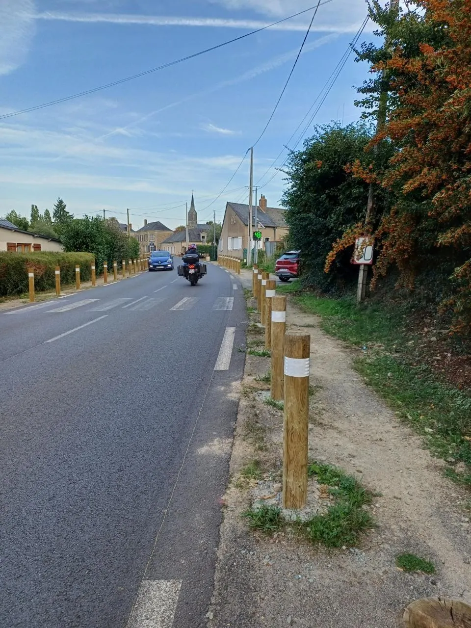 précise Jean-François Vaillant, maire délégué de Thouarcé. Je trouve ça très bien. La hauteur des poteaux et leur espacement signalent bien que l’on circule en agglomération, ceci accentué de nuit par la bande réfléchissante à leur sommet »,