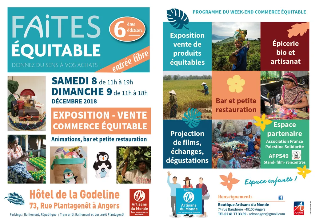 - Exposition vente de produits équitables : épicerie bio et artisanat.