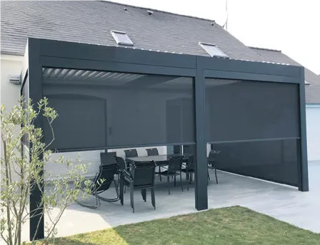La pergola de David à Pouancé est équipée d’une toiture ouvrante permettant une ventilation naturelle ou une protection totale si besoin. Les lames orientables offrent une possibilité supplémentaire pour ajuster la quantité de lumière et d’ombre souhaitée. La pergola est dotée de stores rétractables qui permettent plusieurs avantages pratiques : couper le vent, atténuer la température, créant ainsi un espace confortable. Elle offre une barrière efficace contre les moustiques et elle protège des intempéries permettant de prolonger les soirées d’été.