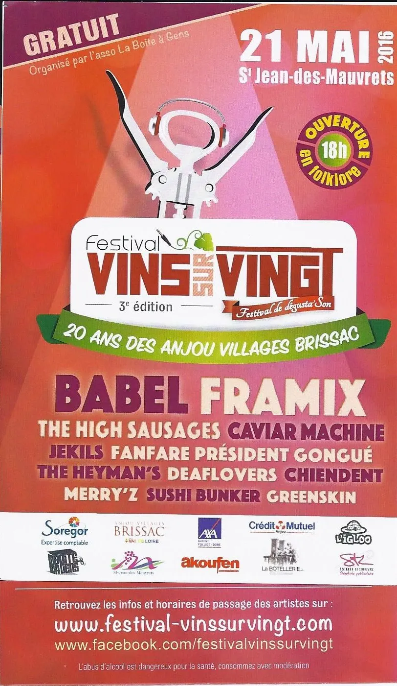 Infos pratiques sur : www.festival-vinssurvingt.com ou www.facebook.com/festivalvinssurvingt