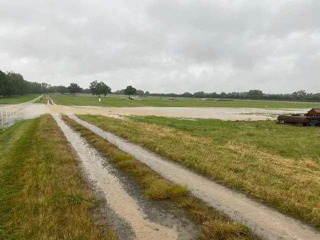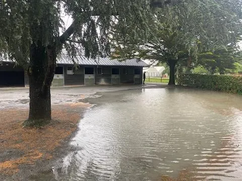 L’hippodrome de Senonnes-Pouancé, gorgé d’eau, a dû annuler la réunion PMU qui devait s’y tenir ce jeudi 20 juin. © Fabienne AULNETTE
