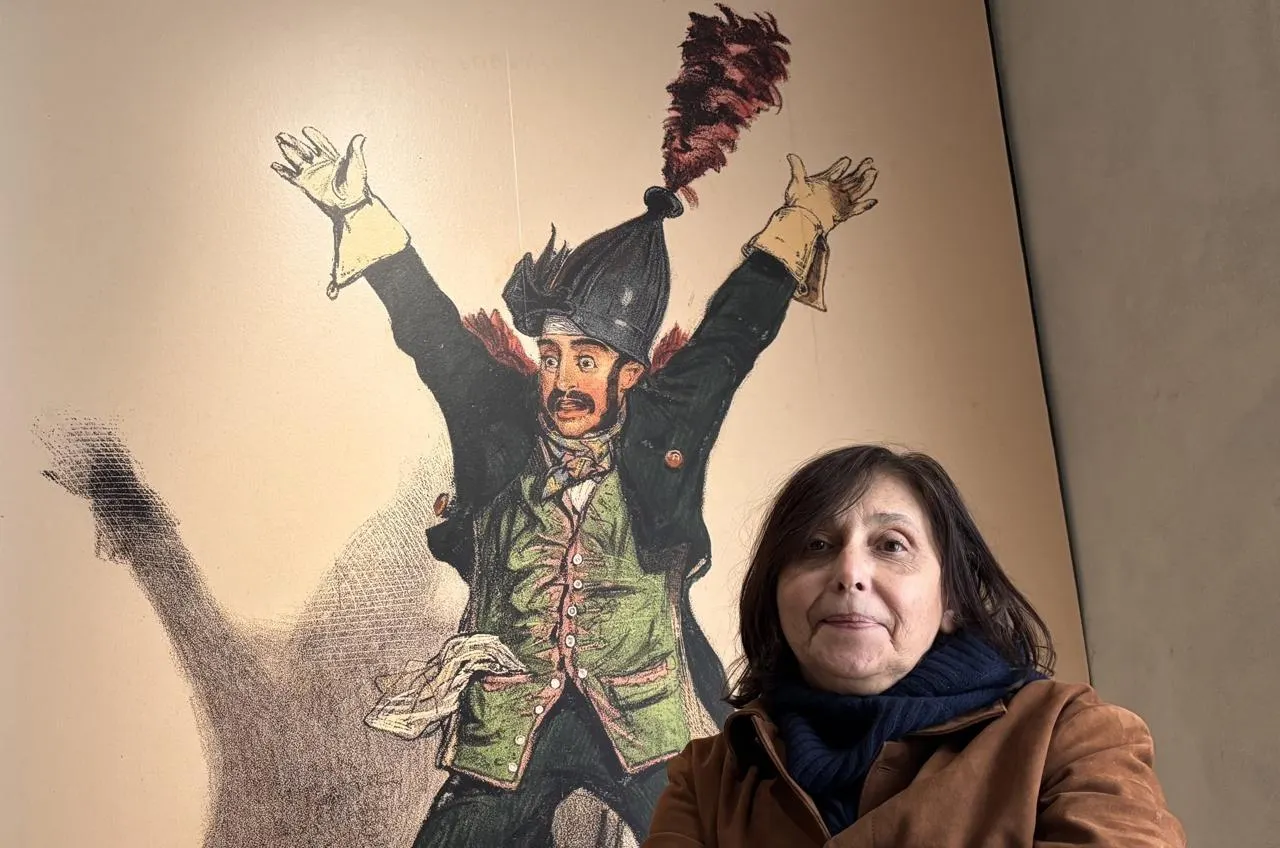 Dominique Gagneux, directrice du musée d’art contemporain de l’Abbaye de Fontevraud, et Chicard, l’un des personnages clés de Gavarni, le dessinateur du carnaval de Paris. © OUEST-FRANCE