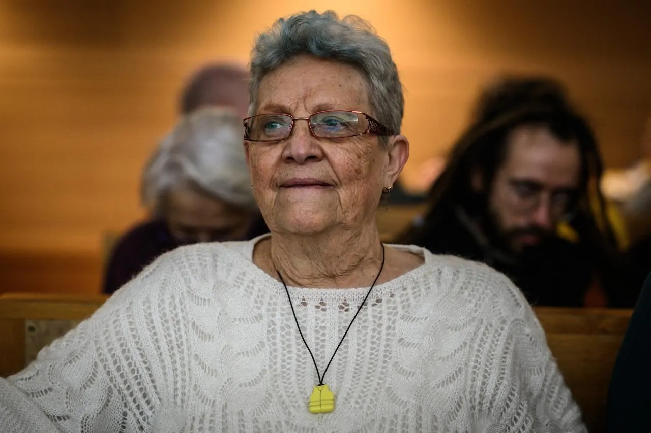 Geneviève Legay, gravement blessée lors d’une manifestation des « gilets jaunes » en 2019, au début du procès du commissaire ayant ordonné la charge, au tribunal de Lyon, le 11 janvier 2024. © JEFF PACHOUD / AFP