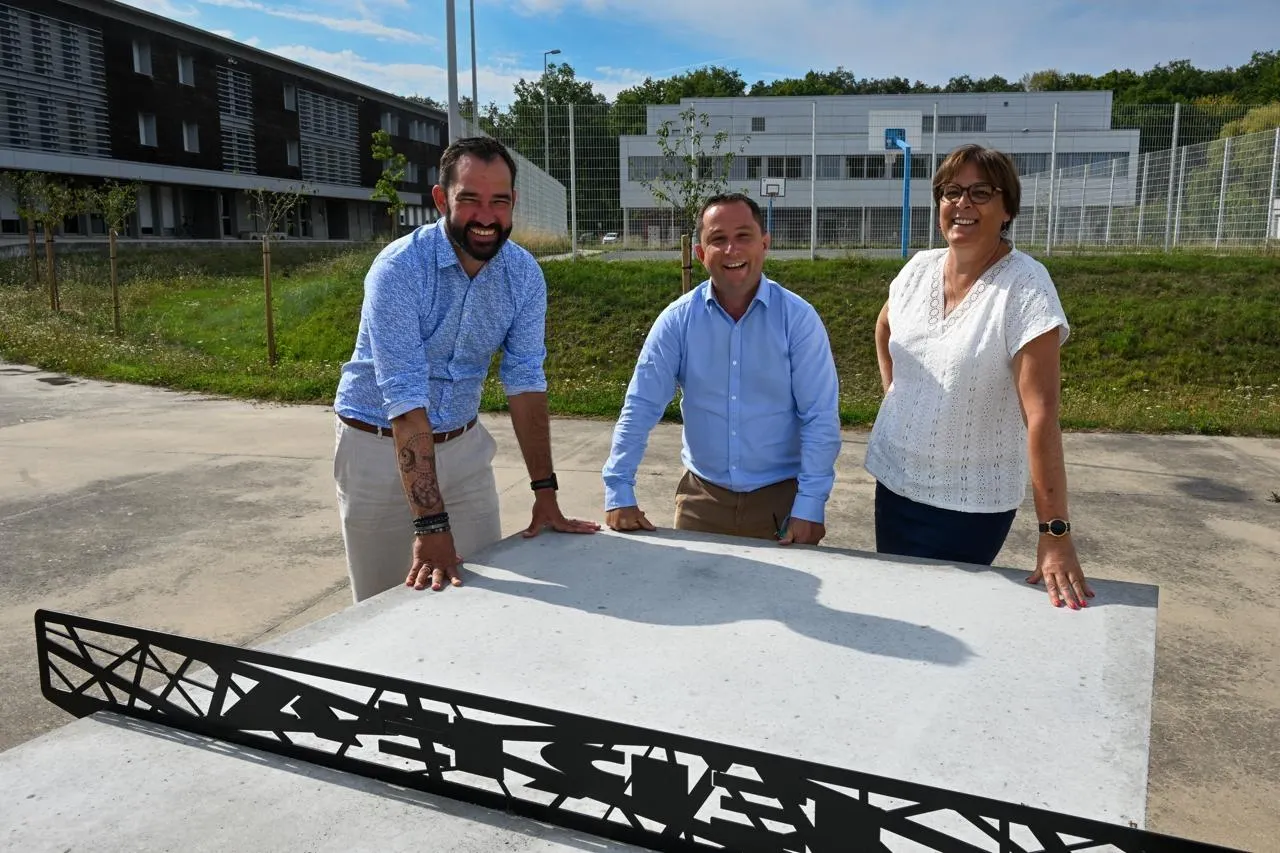 Saint-Barthélemy d’Anjou, le 26 août 2025. Le proviseur Nicolas Quinqueneau (à gauche), le secrétaire général Julien Landelle et la directrice des formations professionnelles Carole Herouard sont prêts pour la rentrée de l’Eréa des Terres Rouges. © CO - LAURENT COMBET