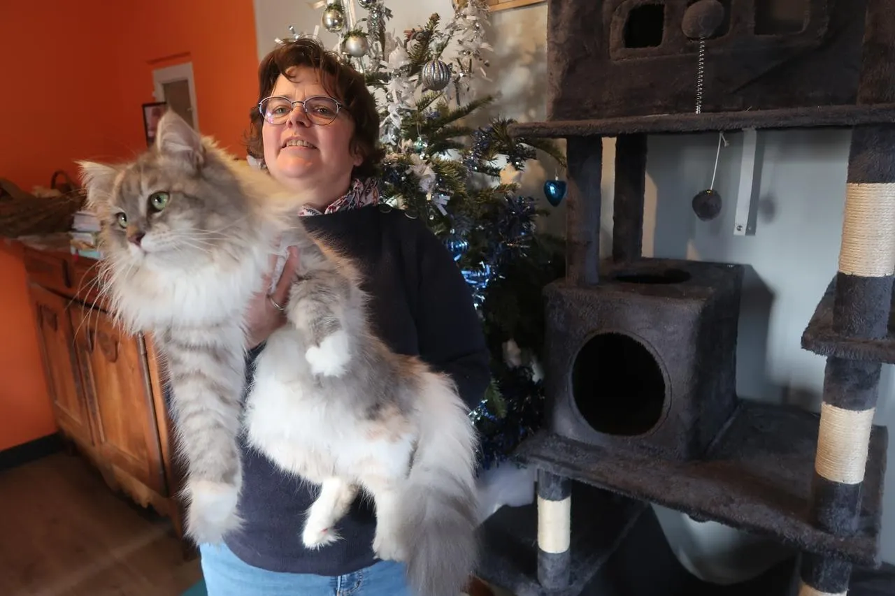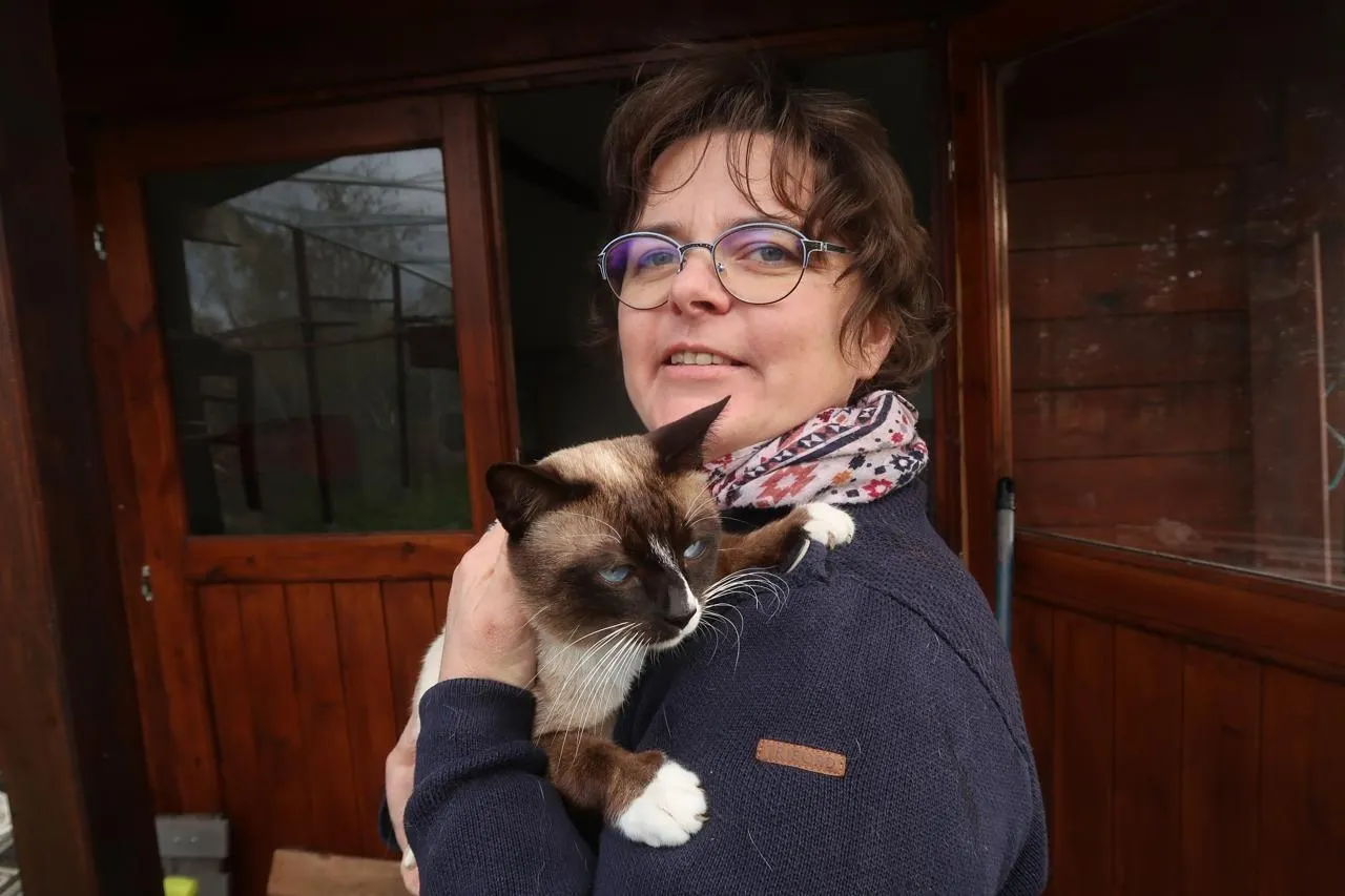 Fougeré, le 9 janvier 2026. Marie Lhuissier élève des chats de la race Snowshoe. Elle est ici avec son mâle reproducteur, Univers de La Lande Étoilée. © CO – Agathe LE NUEFF
