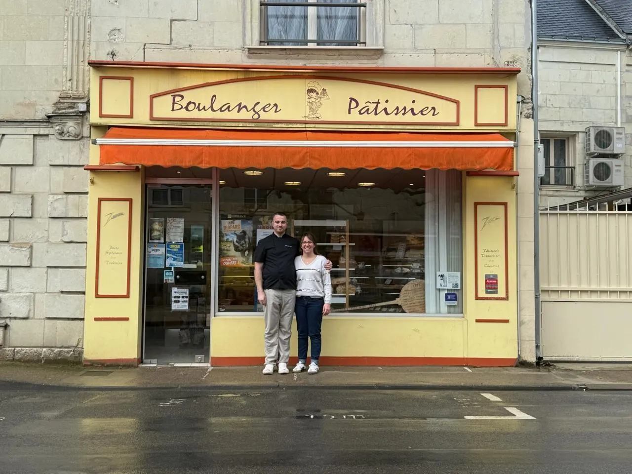 Charles Pyré, devant sa boulangerie Le Fournil de la Loire, avec sa compagne, Méline Mariet. © Charles Pyré