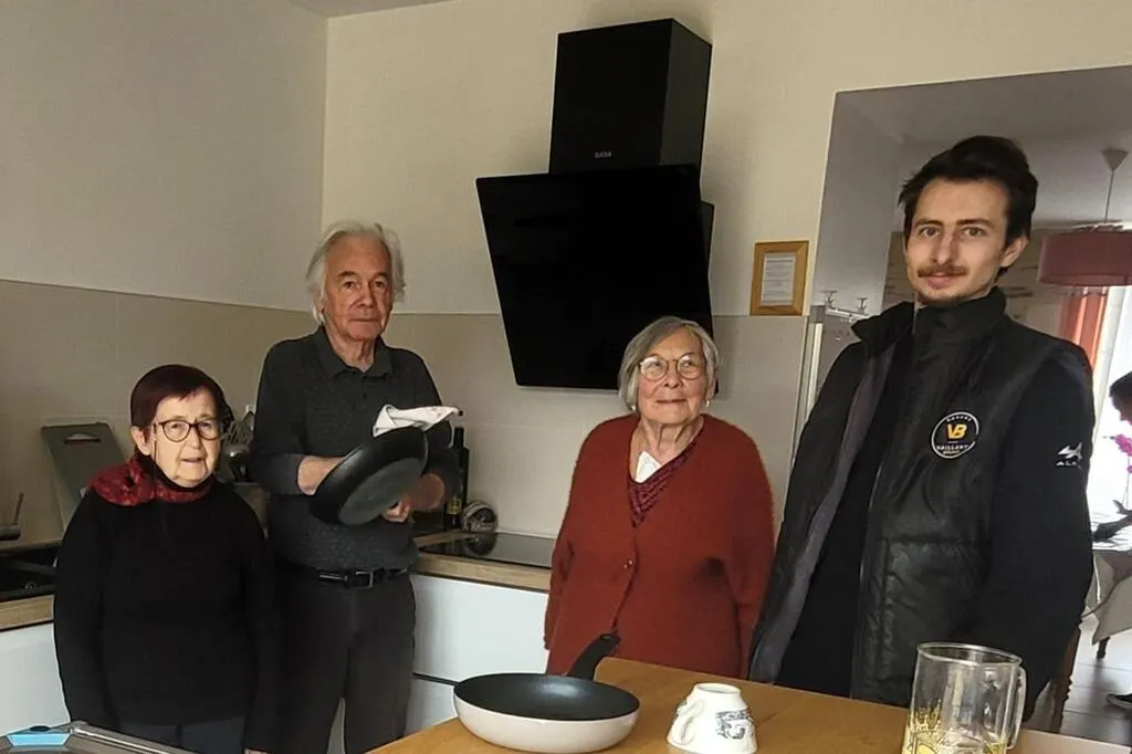 Mickaël, 22 ans, habite depuis quelques jours sous le même toit qu’Eugénie, 90 ans, Raymonde, 85 ans, Louise, 83 ans, Daniel et Odette, les résidents de la Colocation accompagnée de personnes âgées (CAPA) de l’Aubance, une grande maison ouverte depuis un peu plus de deux ans, au cœur du village.
