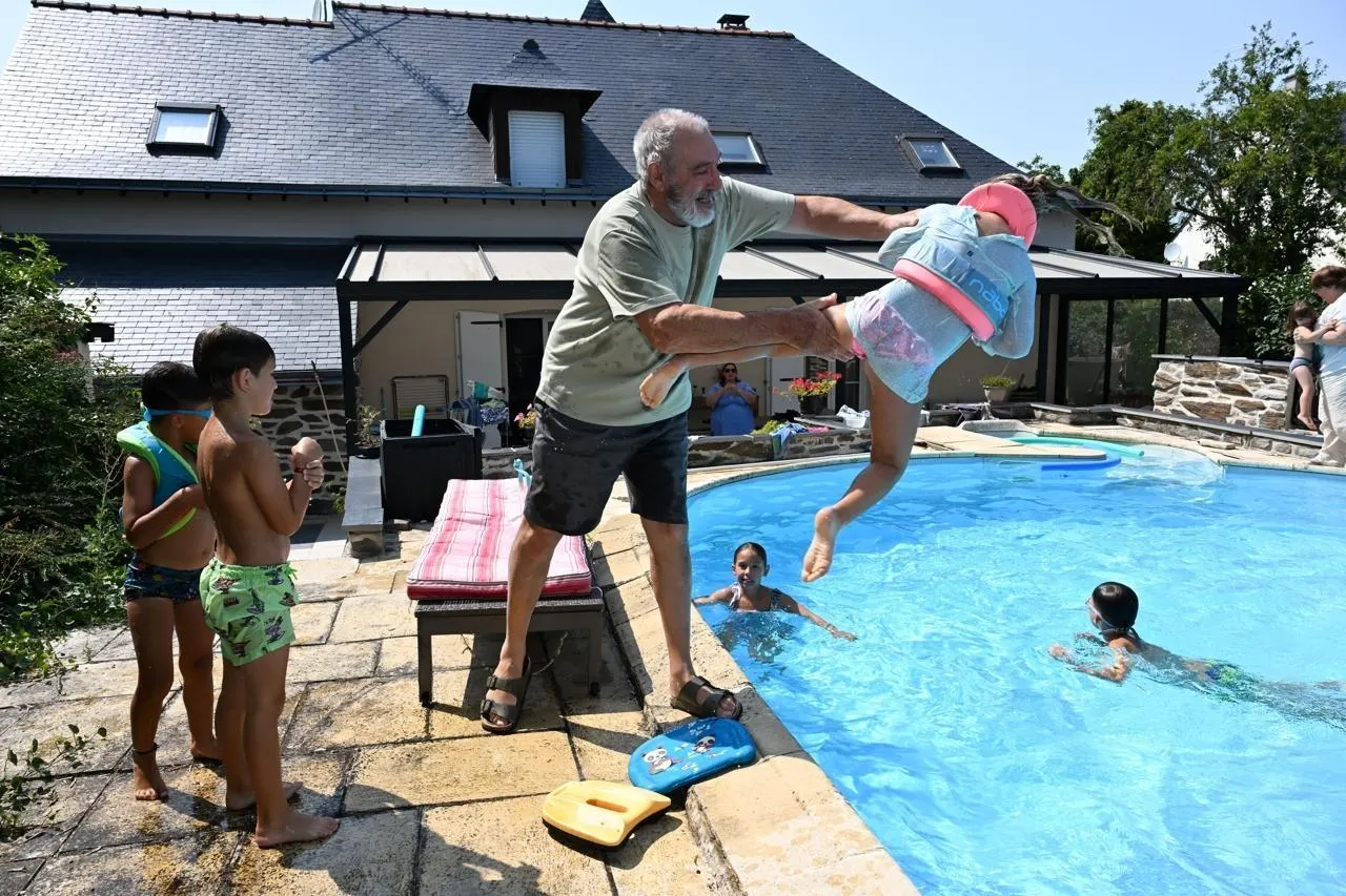 Saint-Melaine-sur-Aubance, 5 août 2025. Nicole et Frédéric ont 9 petits-enfants, qu’ils gardent pendant les vacances scolaires. © Josselin Clair