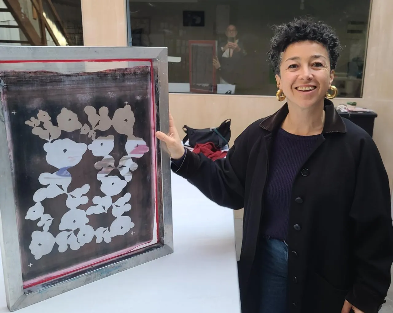 A la tête de l’atelier, Anissa Allam Vaquez perpétue l’At de l’ennoblissement textile. Formée aux Beaux-Arts d’Angers et forte de plus de 15 ans d’expérience dans l’enseignement supérieur, elle s’inscrit dans la tradition du procédé « à la lyonnaise » : une technique centenaire d’impression au cadre plat. Ses textiles trouvent leur place aussi bien dans la décoration d’intérieur que dans des projets scénographiques.