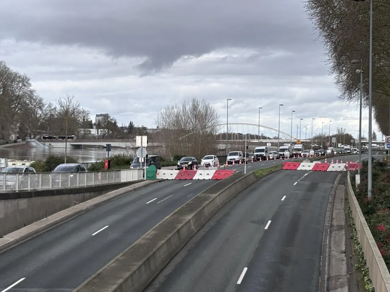 Les trémies des voies sur berges sont fermées jusqu'à nouvel ordre à Angers. © Ouest-France