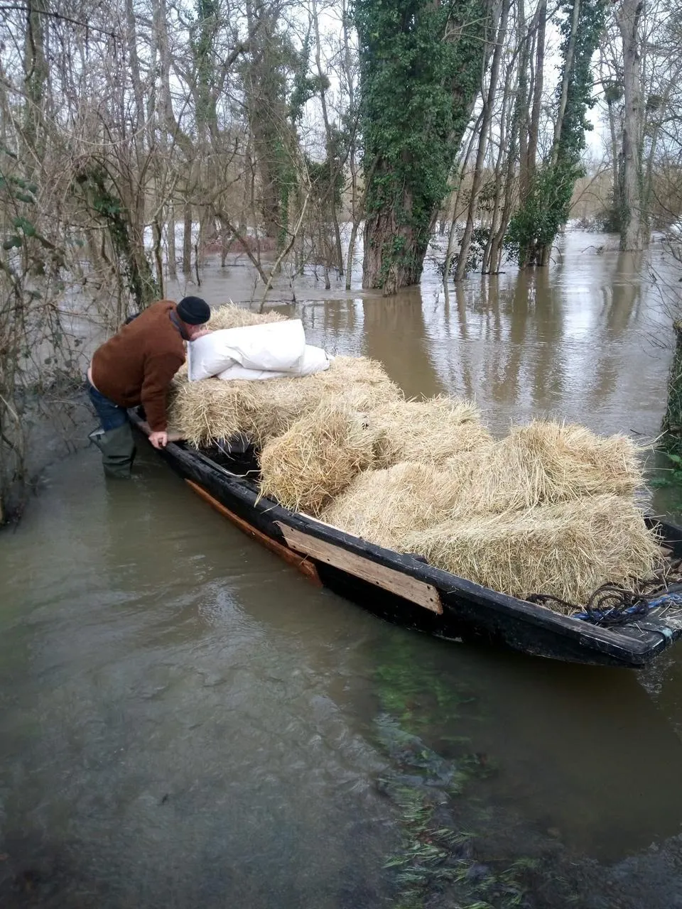 Face aux inondations, le natif de Rochefort-sur-Loire (Maine-et-Loire), Pierre Bodereau est très sollicité. Ces mardi 17 et mercredi 18 février, il n’a cessé de rendre service à ses voisins. À deux reprises, il a transporté sur sa plate (barque) quatorze bottes de foins et deux sacs d’avoine pour des chevaux déplacés.