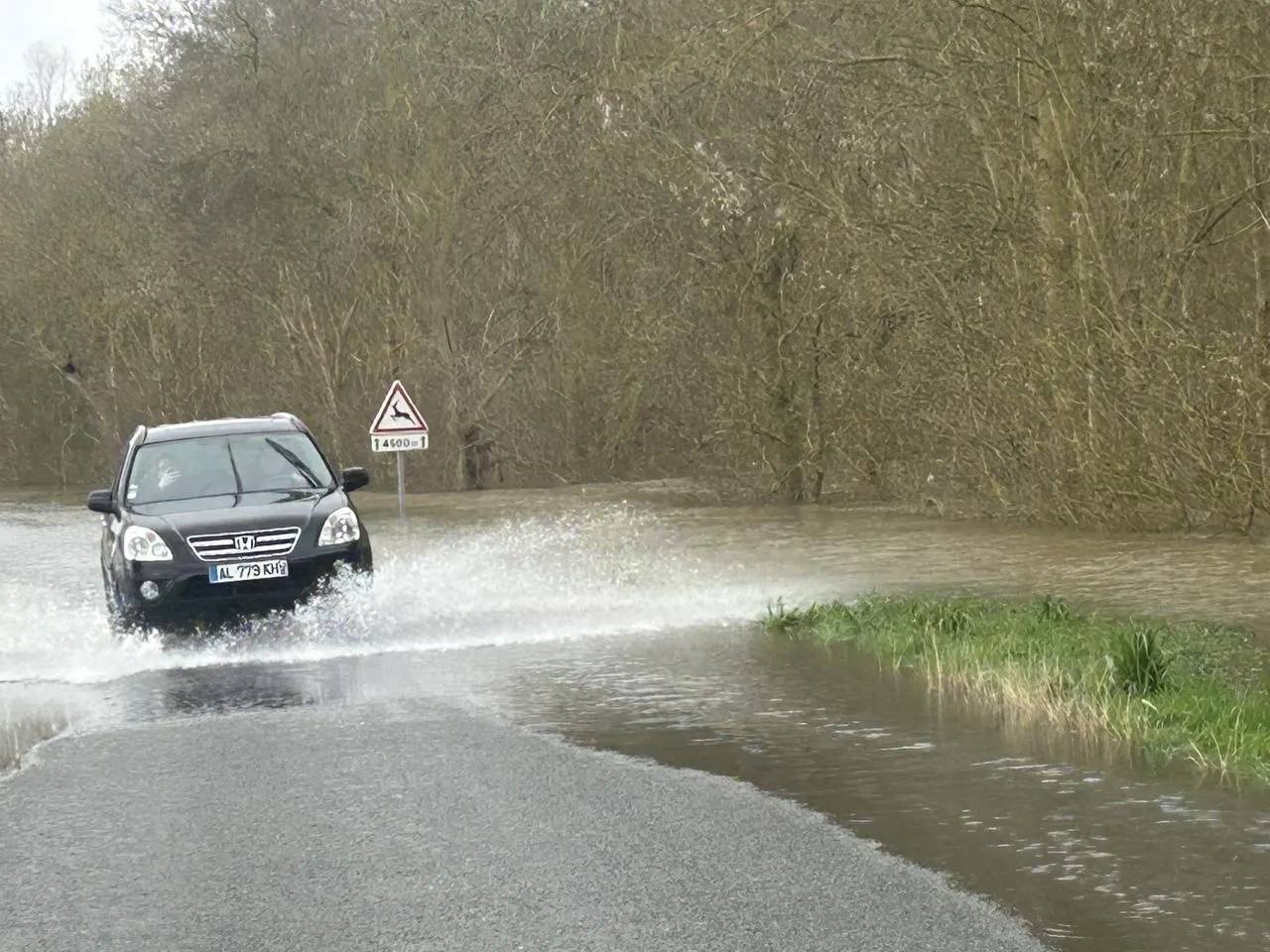 À la sortie de La Copardière, près des Ponts-de-Cé, la RD 132a été submergée par la Loire, qui se reverse par endroits dans le Louët également en crue. © CO