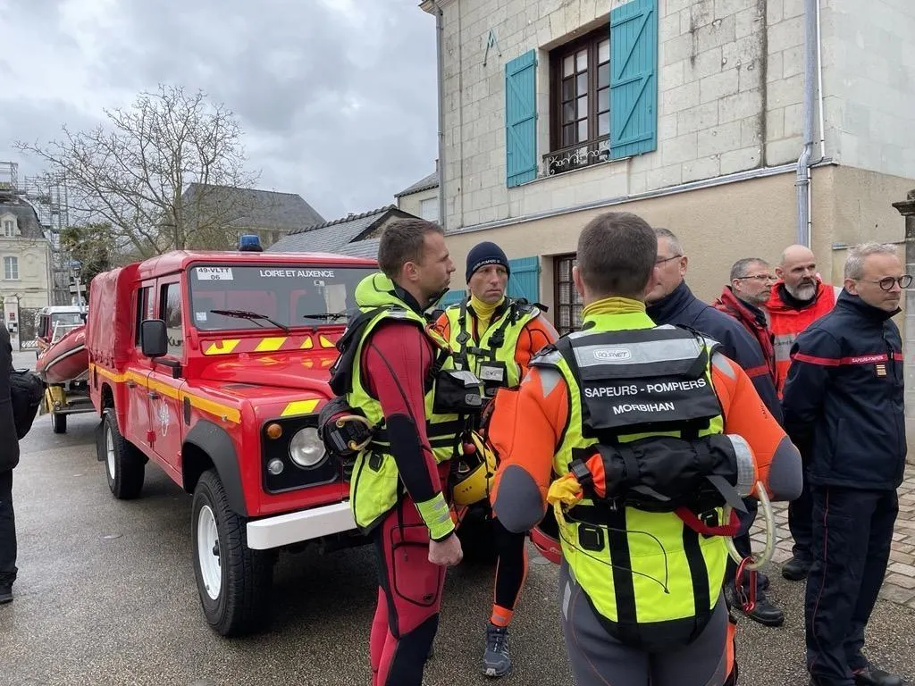 Des sapeurs-pompiers de Normandie et de Bretagne sont arrivés en renfort dans le Maine-et-Loire, touché par d’importantes inondations.