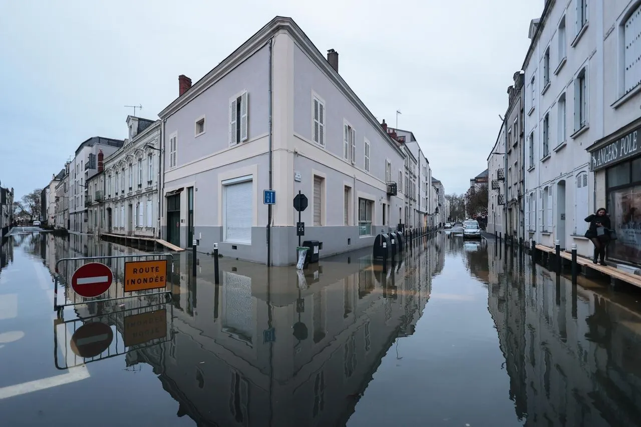 Angers, vendredi 20 février 2026. La Maine va continuer d’envahir les rues du bas du centre-ville d’Angers ce week-end selon le dernier bulletin de Vigicrues. © CO- Régine LEMARCHAND