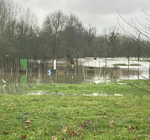 L’eau recouvre les structures et envahit les abords, rendant le site totalement impraticable. Même les chemins d’accès sont partiellement submergés.