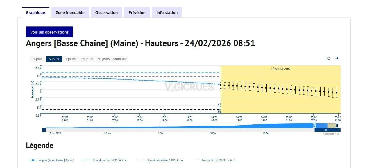 Toujours placé en vigilance rouge aux crues par Météo France, le Maine-et-Loire continue de vivre avec des niveaux d’eau très élevés et ce, malgré la lente décrue amorcée depuis dimanche 22 février 2026, en soirée. Rendez-vous quotidien depuis plusieurs jours maintenant, la cellule de vigilance crue organisée à la mairie d’Angers, a permis de faire un nouveau point de situation, pour ce mardi 24 février matin.