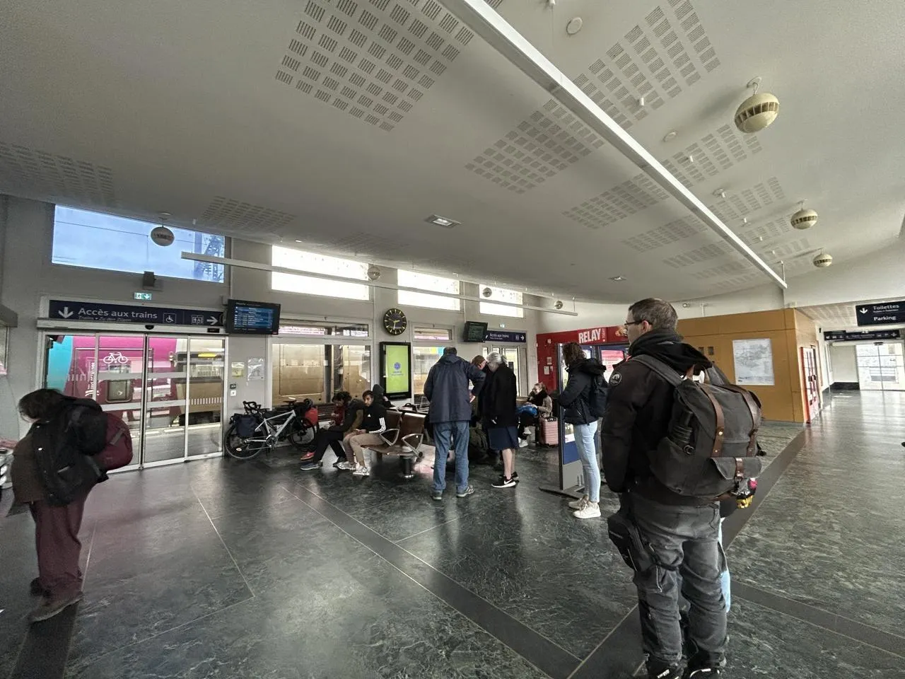 Le pic de crue de ce dimanche 22 février 2026 a fortement perturbé le trafic SNCF, laissant les usagers du train plus ou moins démunis dans le hall de la gare de Saumur (Maine-et-Loire).
