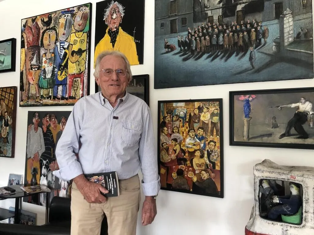 Paul Salmon, ici chez lui, au Chêne-Landry, à Cholet, au milieu de ses tableaux et objets d’art, acquis auprès d’amis artistes ou rapportés des voyages réalisés dans le monde entier. © Ouest-France