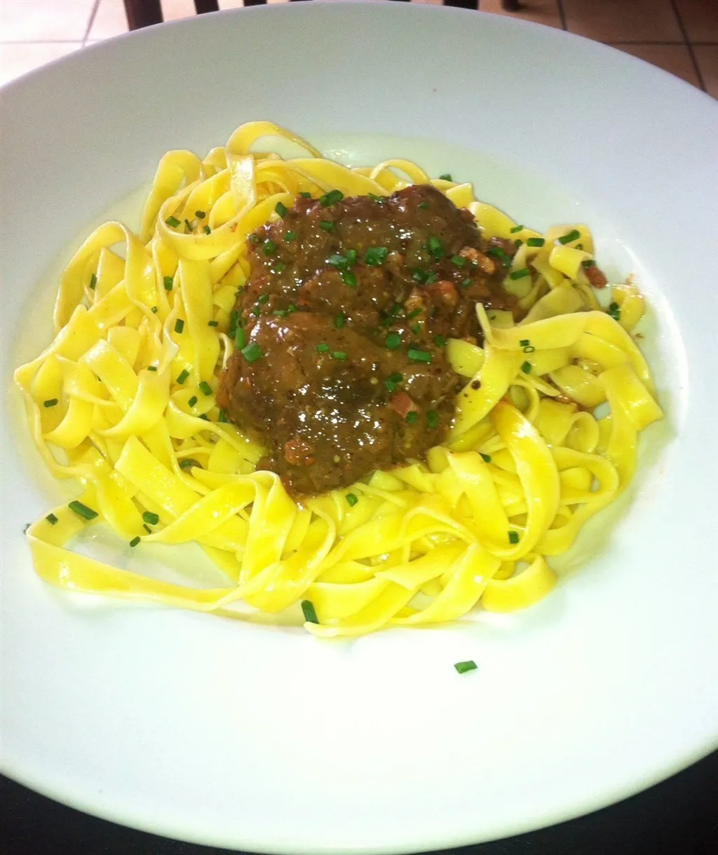 6. Servir avec des tagliatelles fraîches et quelques brins de ciboulettes pour la fraîcheur et une touche de couleur !