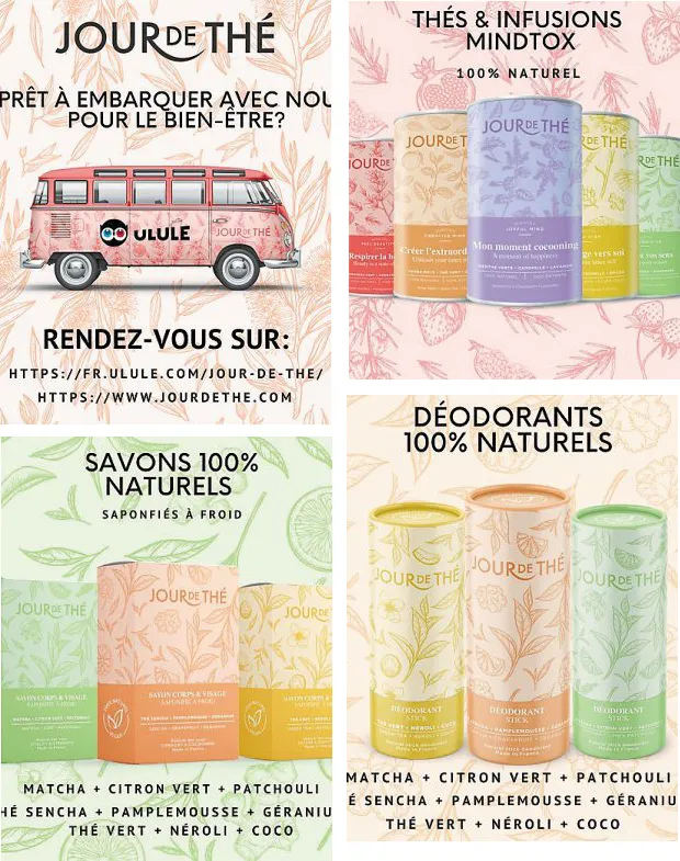 Si l’idée de départ s’est articulée autour du thé, l’envie de Mathieu Chailloux a vite été plus grande et il a commencé à chercher quel type de produits pouvait être cohérent pour sa marque Jour de thé. C’est ainsi qu’il s’est intéressé à la cosmétique, d’abord par les savons, puis les déodorants. Il n’est pas dit qu’il développe encore plus largement sa gamme de cosmétiques. Les idées foisonnent !Â