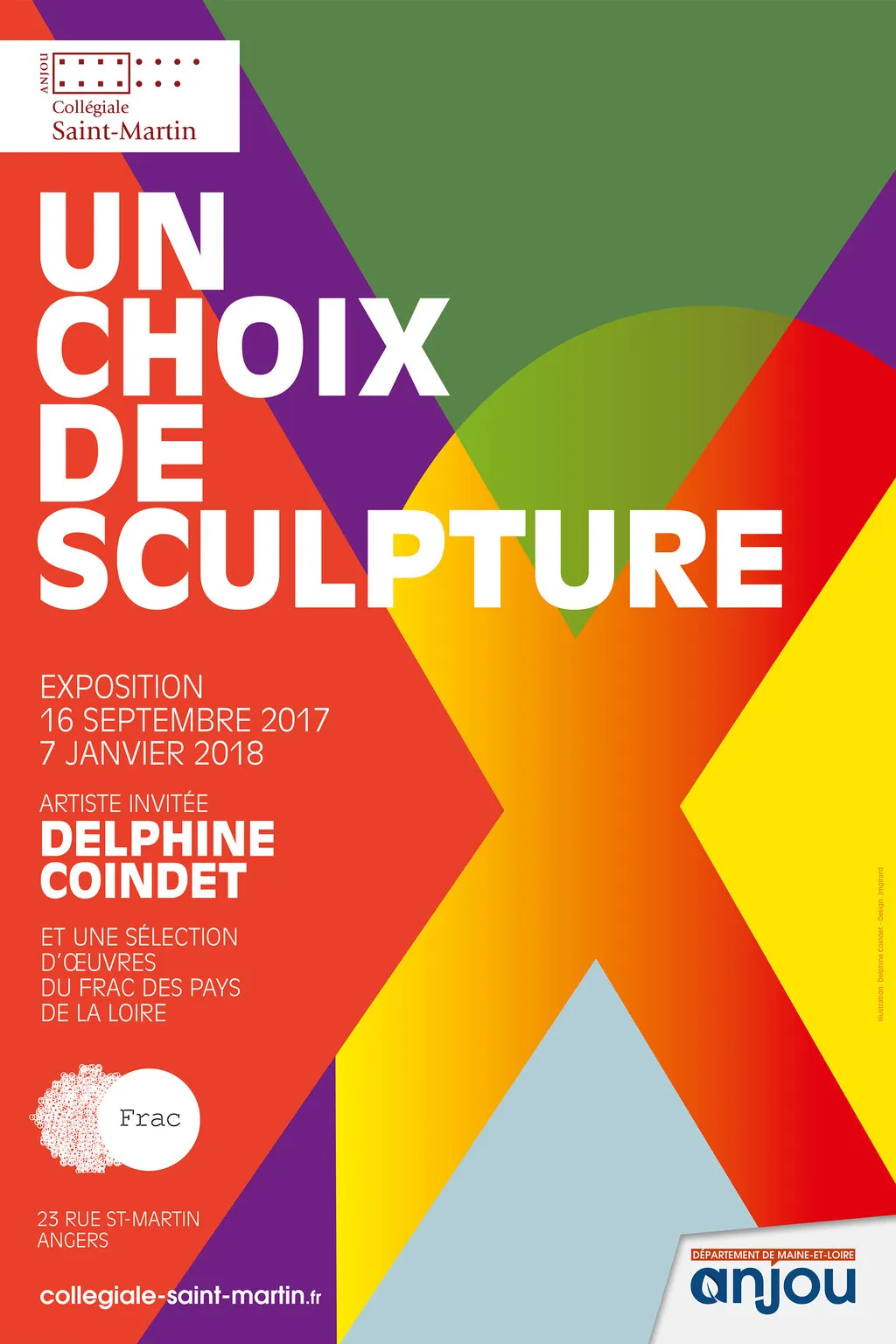 Les 16 et 17 septembre, à l'occasion des Journées du Patrimoine, la collégiale Saint-Martin ouvre au public sa nouvelle exposition temporaire : “Un choix de sculpture”, présentée jusqu’au 7 janvier 2018. En partenariat avec le FRAC (Fond régional d’art contemporain) des pays de la Loire, le Département de Maine-et-Loire laisse carte blanche à Delphine Coindet, artiste plasticienne, pour signer la scénographie de cette exposition. Elle y présentera des productions réalisées spécifiquement pour la collégiale, ainsi qu’une sélection d’œuvres issues des collections du Frac, interrogeant le travail de la sculpture, son rapport à l’architecture et à la lumière.