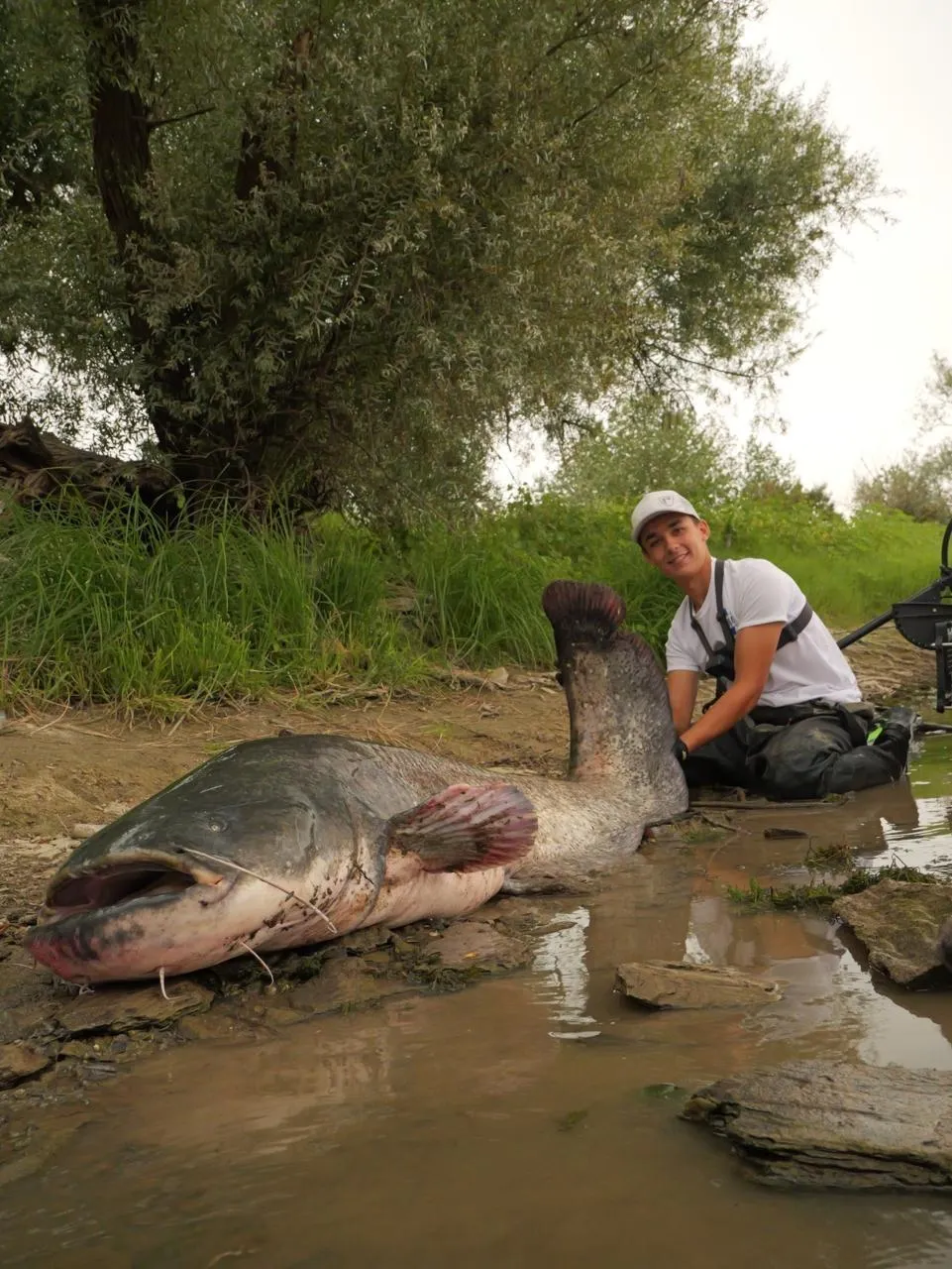 Le jeune homme de 19 ans a sorti de l’eau un silure de 2,44 m, mercredi 20 août, entre Angers et Bouchemaine. © DOCUMENT REMIS | Kévin CHAUVIN