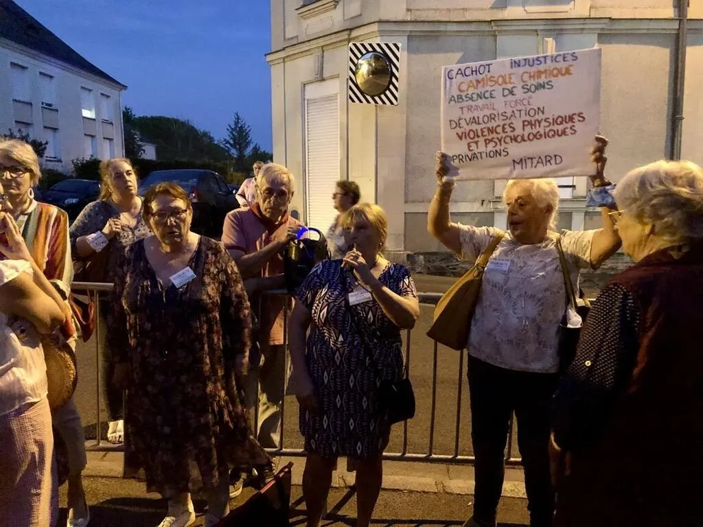 Des membres de l’association, anciennes pensionnaires de la congrégation du Bon Pasteur, sont intervenues lors d’une déambulation nocturne, pour le millénaire de l’abbaye Saint-Nicolas, à Angers (Maine-et-Loire), vendredi 26 août 2022. Elles reprochent à l’événement de ne pas mentionner les maltraitances qu’elles ont subies.