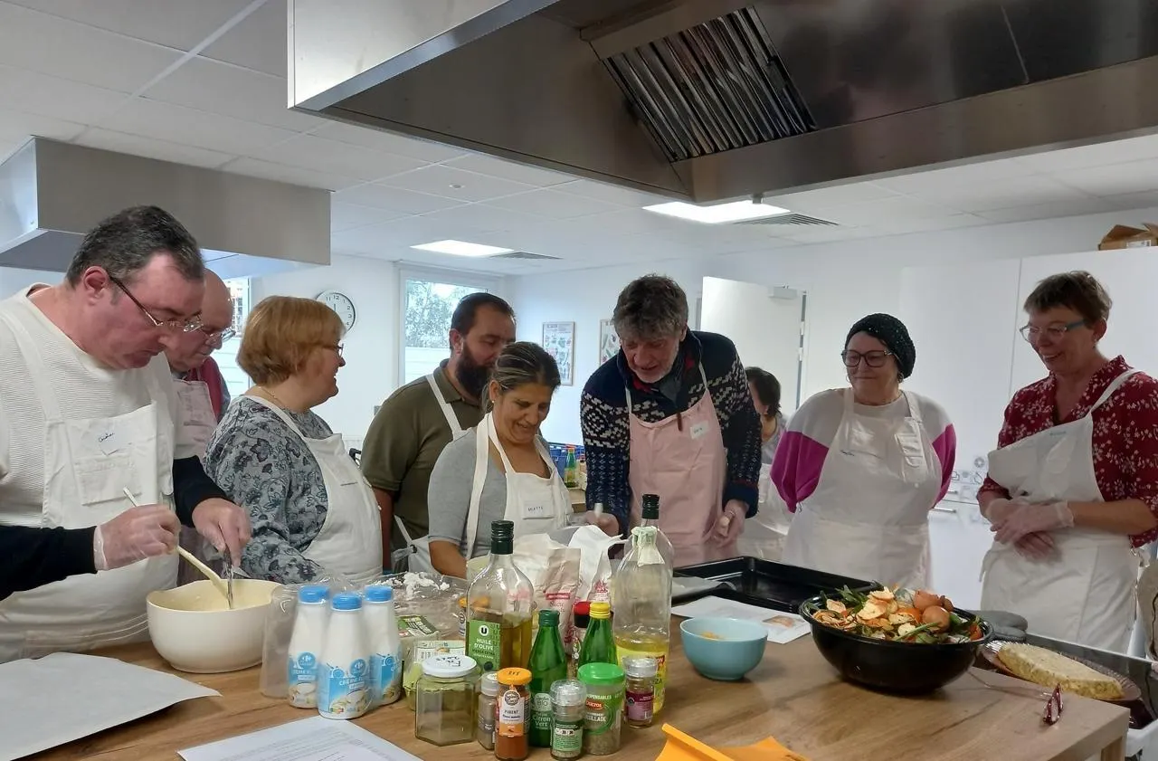 Ce mercredi 3 décembre 2025, huit personnes sont inscrites à l’atelier cuisine animé par deux bénévoles de la Banque alimentaire, Nicole et Hervé. « Je suis un cuisinier frustré, rigole l’ex-ingénieur dans le spatial. On m’a empêché de prendre l’option cuisine au Bac parce que j’étais un garçon ! Mais j’adore toujours cuisiner. »