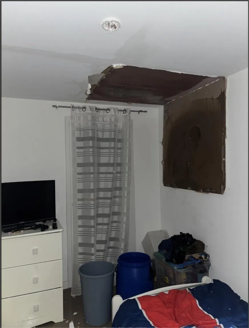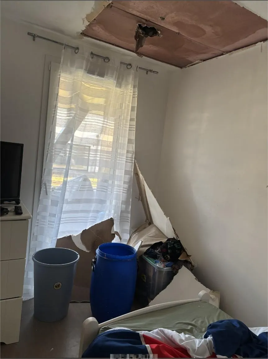 Dimanche 19 janvier. Une partie du plafond d’une chambre d’enfant d’un logement d’une résidence de Trélazé s’est détachée avant de blesser un locataire, à la suite d’un dégât des eaux. © Extérieur
