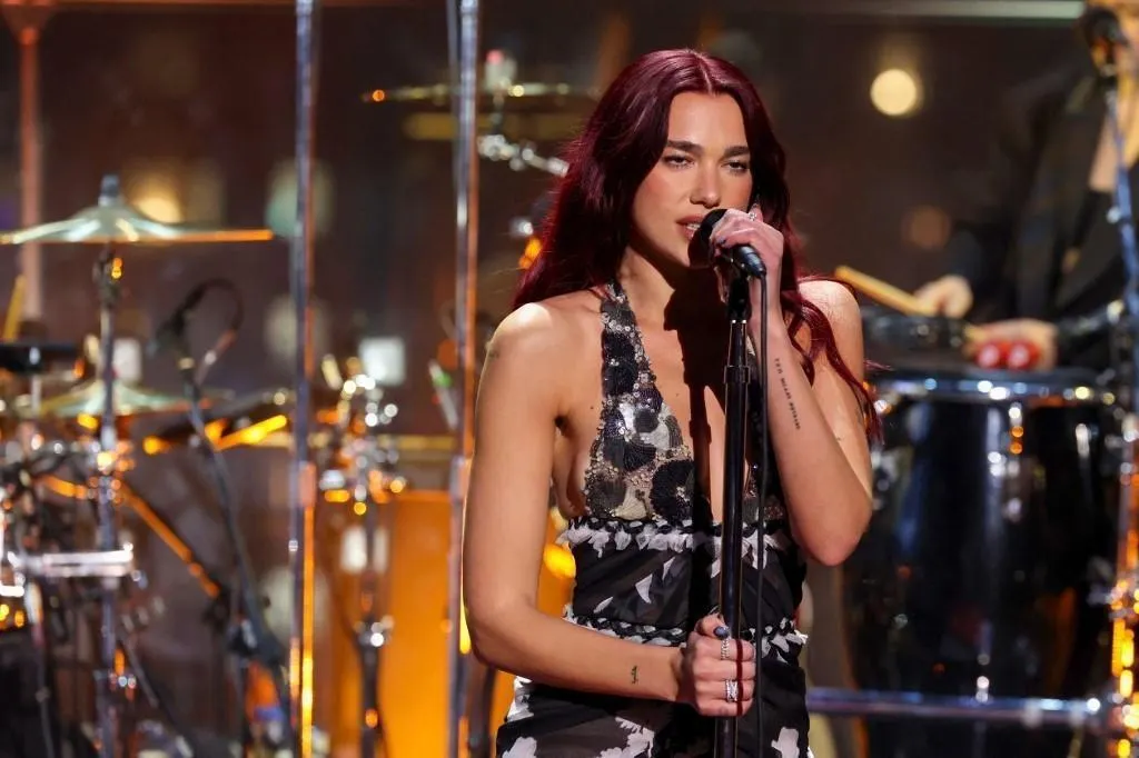 Dans un post publié ce lundi 9 février 2026, Dua Lipa partage la photographie d’un panier de course contenant trois sachets de Brets, les chips fabriquées dans le Morbihan. © Cindy Ord / GETTY IMAGES NORTH AMERICA / Getty Images via AFP